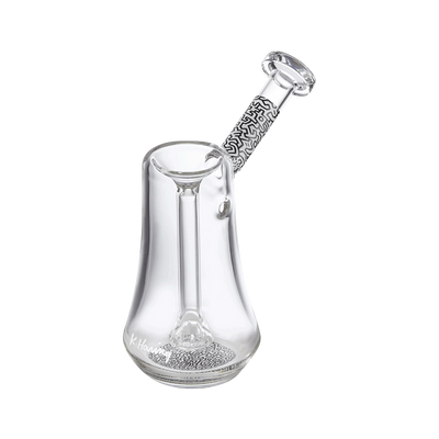 This 6.5" tall bubbler by Simply Crafted is made from thick and durable borosilicate glass. It showcases a fixed bowl and downstem and a showerhead percolator with 8 slits to ensure all your rips are cool and smooth. It’s comfortable to hold in one hand and flares at the bottom for stability when set on a flat surface.