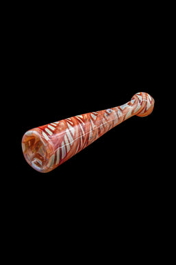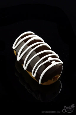 A close-up, angled view of the Glassheads "Sweet Eclair" Chillum, resembling a glazed pastry with its swirled glass design.