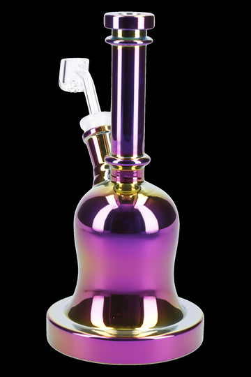 Ring in the good times with the Bell Shaped Dab Rig made of durable glass. This shimmering water pipe with the bell shaped design has a 14.5mm female joint and a fixed downstem. It comes complete with a 14.5mm male quartz banger with an angled top edge for easy access.