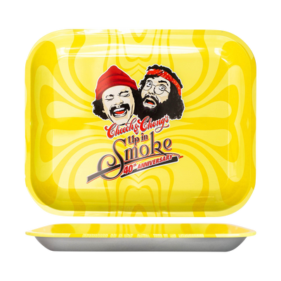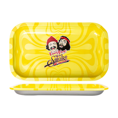 Celebrate Cheech & Chong's 'Up in Smoke' 40th Anniversary with this bright and colorful yellow rolling tray. Made of high-quality aluminum and featuring a non-stick surface, this sweet-looking tray is just what you need for rolling your doobs and keeping all your smoking accessories neat and tidy.