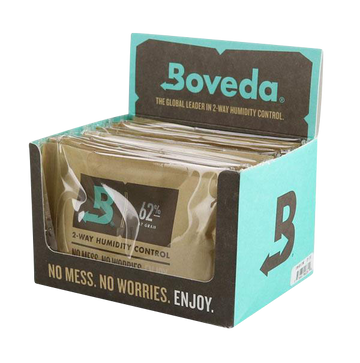 This 12 piece display of Boveda Humidity Control packs will keep all your stored herb at an ideal humidity of 62%. The packs are FDA approved, biodegradable, and contain only natural ingredients. They reach the ideal humidity in up to two days and need to be replaced after 6 months.