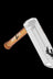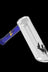 Hit the smoking nail on the head with this hammer-style bubbler. Available in your choice of color! The colored glass accents are subtle yet very stylistic, leaving the design sleek, modern, and eye-popping at the same time. With an x-cut style diffused downstem, the user will surely get a smooth and clean hit every time. The main chamber sports a Dopezilla graphic and Phoenix in front for a little extra flare!