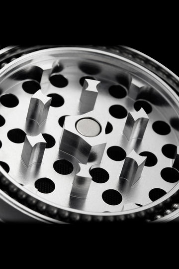 The dual-directional, quad-edged teeth and optimally-sized holes work in unison to shred your nugs without overprocessing. Plus, thanks to its quick release magnets, you never have to line up any threads when opening and closing the grinder. The second chamber is also a breeze to open and close because it’s magnetized.