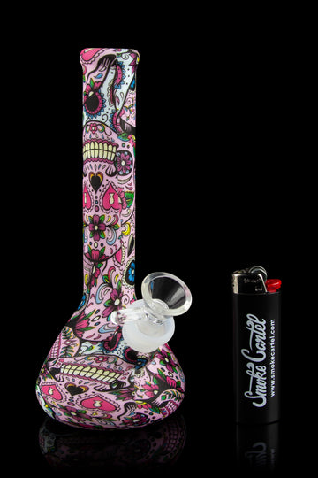 Celebrate your spooky side with this 8-inch tall Day of the Dead Silicone Bong by Bongs USA. This small and portable bong is super lightweight at just 5-ounces and sized just right for travel. Plus, because it's made of PBA-free and FDA-free silicone, it won't break if you drop it or even toss it across the room!