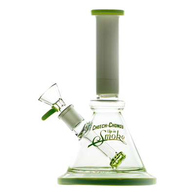 Pedro has a wide classic beaker base and a 'Cheech & Chong Up in Smoke' movie decal on the side. It's the perfect small beaker-base bong to pack in your bag and take along with you.