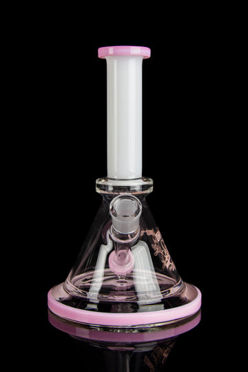 This small and portable 8.25" bong is made of quality borosilicate glass for extra durability. It's fitted with a fixed showerhead downstem with a wheel perc that delivers a clean, smooth smoking experience every time you use it.