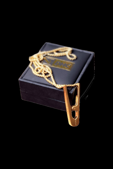 Meet the Daily High Club custom-made Gold Roach Clip, a smoking accessory that's both functional and stylish. Crafted with care, the clip and chain are constructed from thick, heavy steel and adorned with a 14k gold-plated finish.
