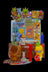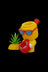 The star of this box is an impressive Geometric Pineapple bong. Clear yellow glass gives view to the fixed downstem perc in the center of the pineapple waterchamber, with the bent neck mouthpiece acting as a splash guard. Green glass accents the bong mouthpiece and pineapple plumage.