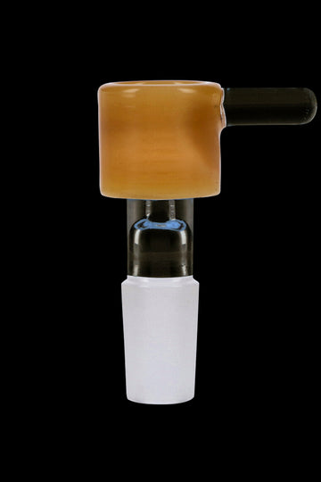 The bowl is made from durable glass and features a 14.5mm male joint and a clear glass handle. The handle protects your fingers from the heat and serves as a roll-stop when you place the bowl on a flat surface when not in use.