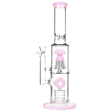 Enjoy the best of water filtration with this stupendous water pipe that stands 14-inches tall. The Dual Chamber Jellyfish Perc is made of thick glass. It's equipped with a 14.5mm female joint and a reinforced fixed downstem.