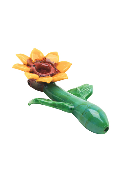 This lovely Sunflower hand pipe measures 5.5 inches long.