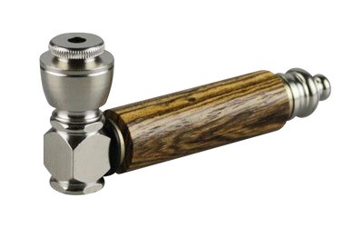 Take quick hits of your favorite herbal strains with this beautiful Exotic Wood & Stainless Steel Hand Pipe. This compact pocket pipe's stem is covered with layers of exotic wood sourced from around the world. The bowl is made of stainless steel and comes with a handy windscreen cap that easily screws on and off.