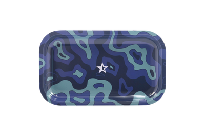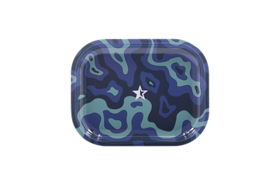 This sturdy and durable rolling tray called 'Fabric' features a topographic map design in a cool & wavy blue color palate. It comes in two sizes: Small (5.5" x 7") and Medium (6.25" x 10.25"). This robust tray has staying power because it's made from high-grade aluminum that doesn't bend, warp, or crack.
