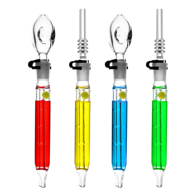 The dab straw section is a colorful piece with a glow in the dark accent marble. The unit measures 10.5 inches long when set up as a dab straw. It's sold in awesomely random colors. Get yours today and enjoy the extreme versatility this kit offers!