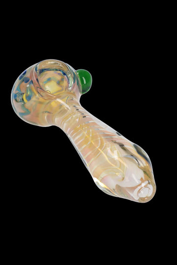 The Gold Twisty Spoon Pipe - 5 in. is a chic and practical accessory that's sure to become your new go-to for elevated cannabis sessions. Smoking Just Got a Whole Lot More Interesting Ditch the dull, uninspired pipes and level up with the Gold Twisty Spoon Pipe - 5 in., featuring an unmistakable twisted design that adds a dash of glamour to your smoke breaks. The sleek gold finish gives this pipe a high-end vibe that's perfect for those who appreciate a little extra oomph. Function Meets Fashion But don't let its stylish looks fool you – the Gold Twisty Spoon Pipe - 5 in. is also built with practicality in mind. The compact size makes it easy to stash and take on-the-go, while the spoon-shaped bowl allows for hassle-free loading and cleaning. Get Ready to Elevate Your Smoke Game Whether you're a seasoned cannabis connoisseur or just starting your journey, the Gold Twisty Spoon Pipe - 5 in. offers an unbeatable combo of style and substance. Treat yourself to a premium pipe that's sure to take your smoking experience to new heights – only at Smoke Cartel.