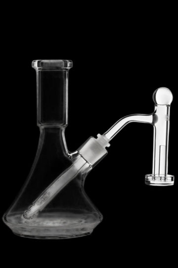 The GRAV® Control Tower Banger Set is designed for a smooth and flavorful dabbing session. The set features the Control Tower Banger with an elongated quartz cylinder and three directionally cut air intakes for optimal airflow. The thick gathered dish base and bottom-loading intake enhance heat retention and ease of use. This set includes a 20mm quartz marble and a terp pillar insert to maximize surface area and vapor release further.