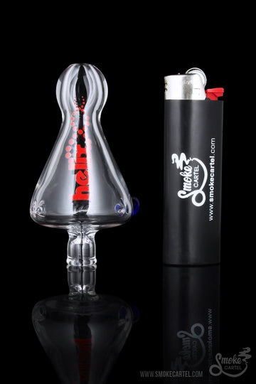 The patented Venturi chamber that Helix pieces are famous for have tiny holes pointing at the same angle around the largest part of the chamber. These holes allow a small amount of fresh air to mingle with the smoke and cool it down while also pressing the smoke against the walls of the bulb, creating a unique swirling effect.
