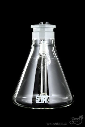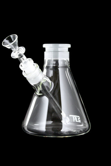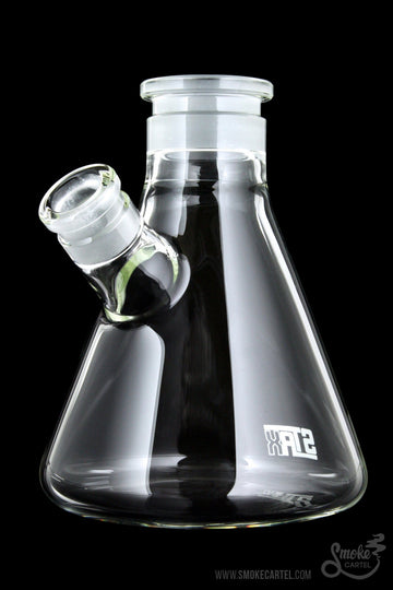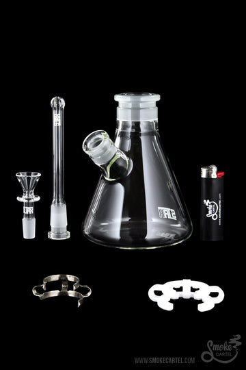 This is a beaker style base with a wide chamber with plenty of space for diffusion, which is provided by a 18.8mm to 14.5mm removable downstem. This classic style is also durable; constructed with 5mm walls. Included with the base is a 14.5mm male flower bowl, one plastic keck clip, and one metal keck clip.