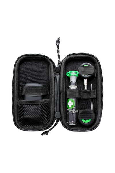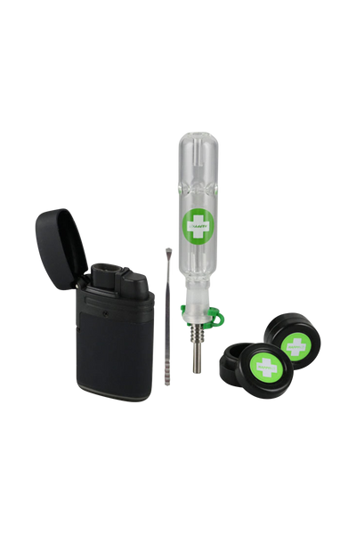 This kit comes in a sleek zippered shock proof case, which protects dabbing tools from damage during travel. Inside you can find a nectar collector for powerful on the go rips, two 5ml silicone containers which will keep your concentrates fresh and a handy steel dabber for effortless preparation.