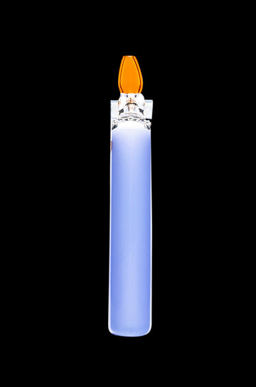 The Bowlman Lighter Hand Pipe from Hemper is totally LIT! This handpipe that’s fashioned to look like a classic lighter, is made of quality glass. It’s a durable pipe that’s 5 inches long and 0.7-inches wide. It has a blue glass lighter body, an amber flame mouthpiece, and a clear lighter top.