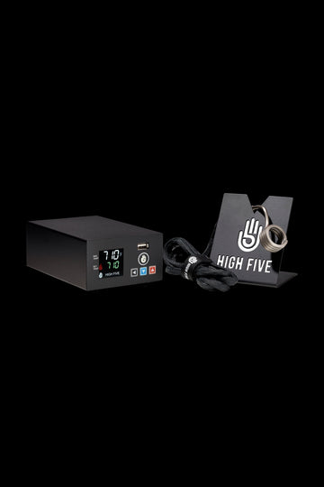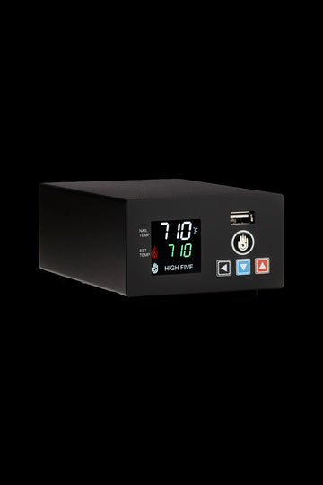 Elevate your dab game with consistent temperature control using the High Five LCD E-Nail with Heater Coil. This set comes with a ultra portable High Five LCD E-Nail Controller that’s 5.5” x 3.5” x 2.5” in size.