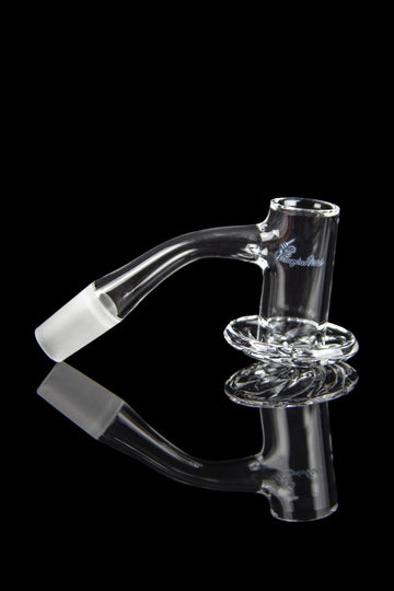This quartz banger with a 90-degree or 45-dgree angle, and frosted joint is called the Beehive and it's from Honeybee Herb of course! When you pair this banger with the unique design with your favorite rig, you can venture into the beehive to collect all that delicious honey you love.