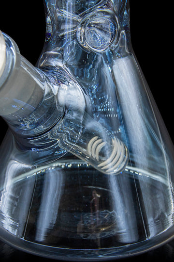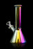 What makes this piece stand out from the others is certainly the iridescent finish, which makes it appear as if it's constantly changing color. Underneath the hypnotizing finish hides a classic beaker shape and 38mm thick borosilicate tubing. This thickness makes the piece heavier for a comfortable sensation when you're handling it.