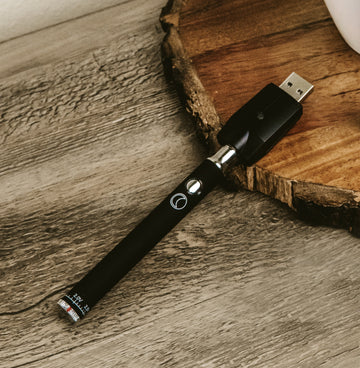 After screwing in your 510 thread attachments, turn the battery on using a power button and adjust the dial on the battery base to select your desired temperature. The Jane West battery includes a geometrically shaped USB charger base that is perfectly handy when the battery requires a power boost.