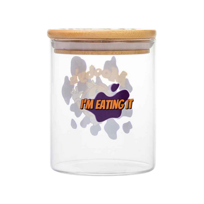 The Mobby's decal depicted on the front is matched with the "I'm eating it" quote on the back. This fun stash jar is made with quality borosilicate glass, and has a wooden lid with a silicone airtight seal. It'll keep your herb fresh for longer and will brighten up every collection.