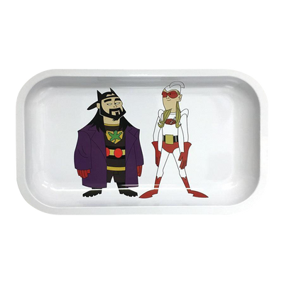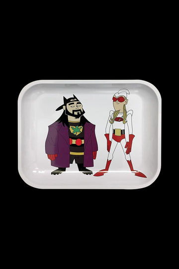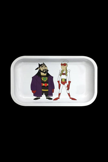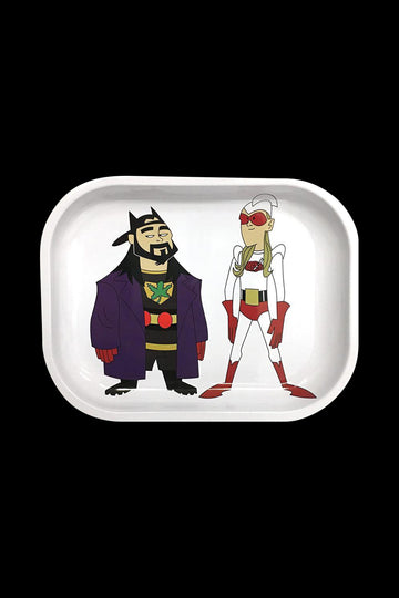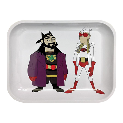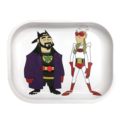Rolling just got more fun with this snoochie boochies rolling tray featuring Jay & Silent Bob's alter egos Bluntman and Chronic on a white background. This great looking rolling tray is made from durable aluminum. It's got a non-stick surface for easy rolling and cleaning and high sides to prevent your stash and rolling gear from sliding off.