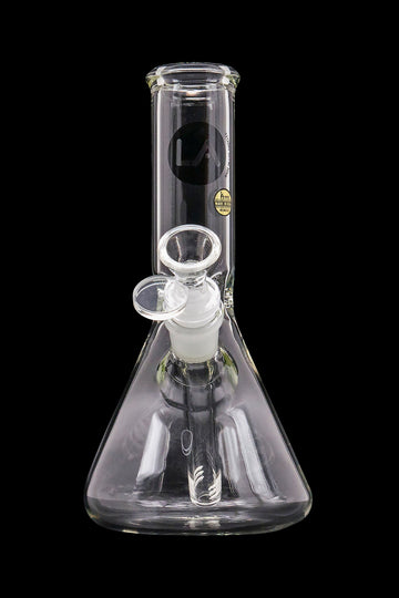 If you like to keep things simple, you'll appreciate the LA Pipes Basic Beaker Water Pipe - Simply Guy. It's a 8-inch tall piece made of 4.5mm thick scientific glass. It's equipped with a 18.8mm female joint and comes with a 18.8mm>14.5mm diffused downstem and a 14.5mm male bowl.