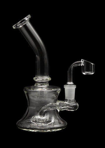 The classic rig features a showerhead perc that packs a big punch despite its modest size. It includes a flower bowl and 90 degree 2mm polished banger, ready to roll right out of the bubble wrap.
