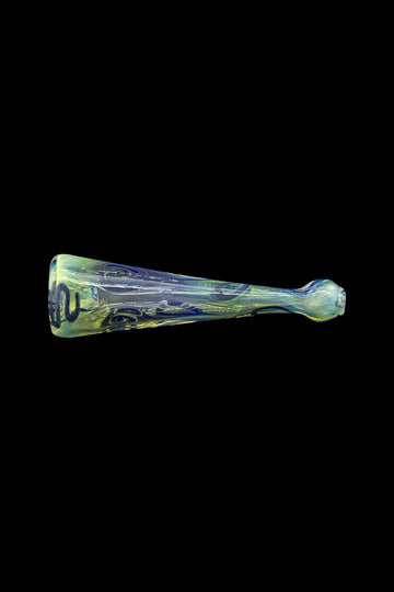 The Inside-Out Funnel Chillum is a practical 4.5-inches long. The chillum’s exterior has been fused with silver to make it a color changing piece. With its cool inside-out blown glass design, you’ll feel like you’re puffing on a work of art!