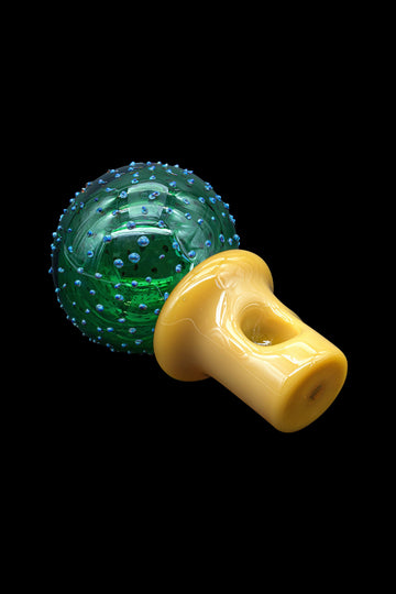 Exciting news for fans of LA Pipes' cactus pipe collection! The latest addition features the "Peyote Cactus" glass pipe, which is not only known for its trippy effects but also holds great significance in native cultures. To pay tribute to this sacred plant, LA Pipes has crafted a stunning glass pipe for smoking dry herbs. The pipe boasts emerald green fumed glass and a caramel base, with a deep bowl and carb for optimal functionality.