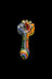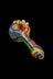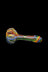 LA Pipes inside out glass "Rainbow" Spoon Pipe is handmade with clear boro glass with rainbow color canes laid on the inside. The head of the pipe has clear glass marbles, a deep bowl, and a carb. A flared mouthpiece helps with additional ash capture. This spoon pipe is stylish and made with heavy smooth borosilicate glass.