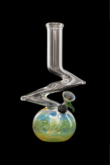The Zong Bubble Bong by LA Pipes is a true classic you’ll always treasure. This amazing water pipe has been handmade in Los Angeles, California using 32mm thick boro glass tubing. It features a zig zag double zong design that’s been wrapped and raked with color. The result is a glass masterpiece with an incredible form.
