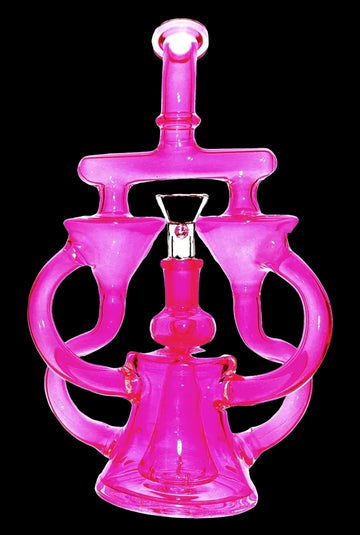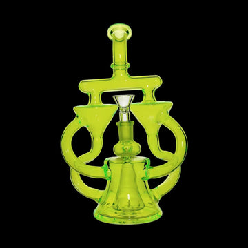 Neon Double Recycler Water Pipe with Pyramid Perc – A Mesmerizing Smoke Experience! 🌈💨