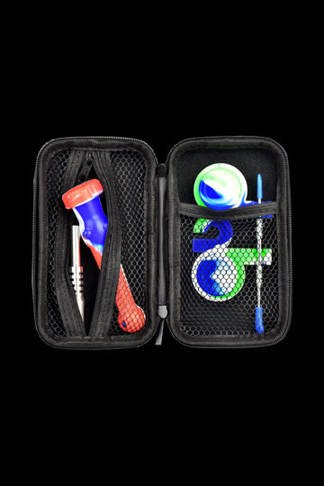 There's a 5-inch metal dab tool inside as well. All of this comes packaged in a nice protective padded carrying case. The kit is available in multiple color options.