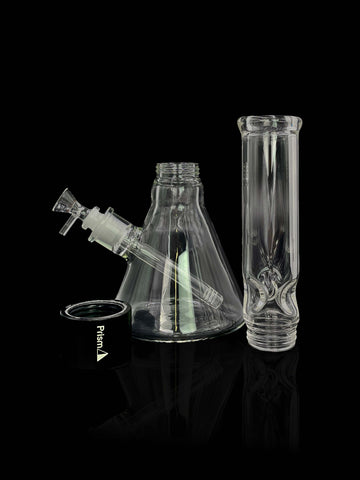 All of the Prism pieces are interchangeable so you can easily create an awesome custom bong that matches your mood and style. The included 13.7-inch tall beaker bong is super durable as it's made from high-end, thick boro glass. When you buy this kit, you get a beaker base, a standard mouthpiece, downstem, handled bowl and an aluminum Halo Connector in your choice of color or design.