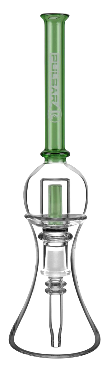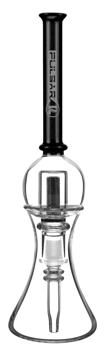 The built-in water chamber cools the smoke and smooths out your hits. The mouthpiece of the vapor straw is adorned with the Pulsar logo.