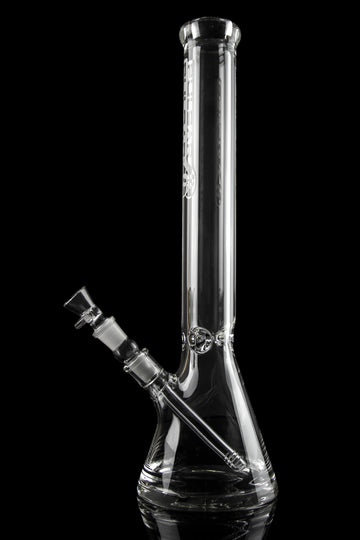 This 18"/18.8mm Female waterpipe, made from super-thick borosilicate glass, also features a 3-pinch ice catch, an herb slide, and a joint clip.