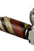 The pipe features a striped design achieved with layers of exotic woods. This natural appearance is contrasted with a stainless steel bowl and mouthpiece. The screw-on windscreen cap completes the look.