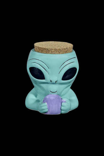 The Alien Stash Jar by Roast & Toast is a fun way to store your herbs to keep them fresh and out of sight. This cute jar featuring a teal-colored alien holding a green cup measures 4”H x 3”W in size.