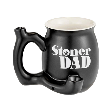 This mug/pipe combo is made of high quality, heat-retaining ceramic. It can hold a full 11 ounces of your favorite hot beverage. This sturdy mug pipe with a 'Stoner Dad' decal has a dry herb bowl built right in, a mouthpiece at the end of the handle, and a carb hole for controlling the size and intensity of your rips.