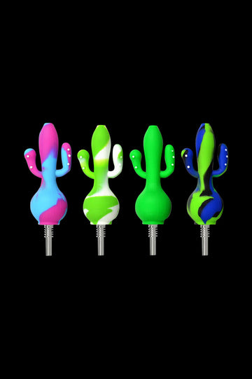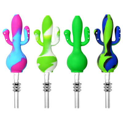 When you want to consume dabs and do it on the go, use this Silicone Cactus Dab Straw. The food-grade silicone body of this straw is shaped like a desert cactus and you can pick the type of tip you want between a 10mm quartz tip or a 10mm Grade 2 titanium tip.