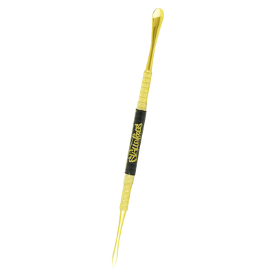 The Gold Edition Dr. Dab has a pointed tip for dabs on one end with a scooper on the other. The tip cuts through shatter with ease and looks amazing while doing it.