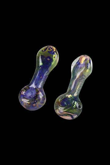 The Splattered Fumed Hand Pipe is a gorgeous piece that's 4-inches long. This sturdy pipe is made from thick and durable borosilicate glass. It features a colorful, splattered fumed glass design that's absolutely gorgeous.