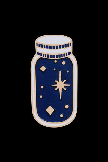Perfect for star gazers, this enamel lapel pin is designed like a jar containing a night sky and stars!