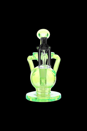 The Lirio comes with a 10mm male quartz banger and a mini directional bubble carb cap. With its vortex chamber, this rig offers recycling action that adds another layer of filtration for the utmost dabbing satisfaction. It’s supported by a thick round base and is adorned with the Stash Shack logo. The mouthpiece is angled to ensure the rig is comfortable to use, regardless of where you do your dabbing.