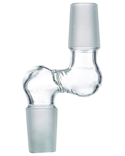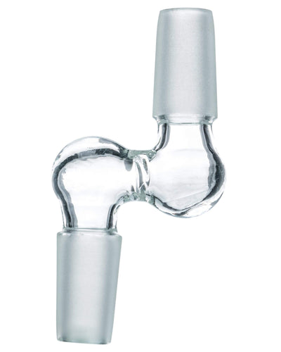 Have a female jointed water pipe but want to use a female jointed bowl or dome? The Step Up 90° Male to Male Adapter enables you to do so! With two male jointed sides, this glass adapter can turn your female jointed dab rig or bong into a male jointed one. Found a magnificent female jointed bowl you really want but your bong only takes male? Insert the Step Up 90° Male to Male Adapter and voila! Now you can use a female bowl on your female bong. There are three sizes to choose from, including one that not only turns your bong into a male joint, but also changes the size to 14mm or 18mm.